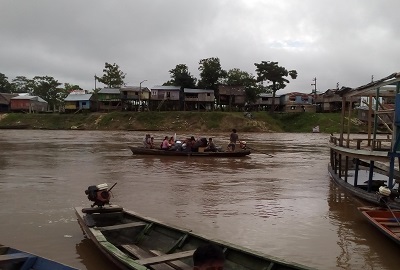En espera del bote para cruzar el rio y dirigirnos al Pueblo San Francisco (Belén).