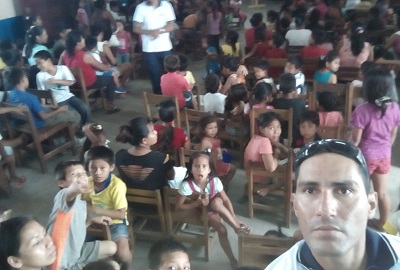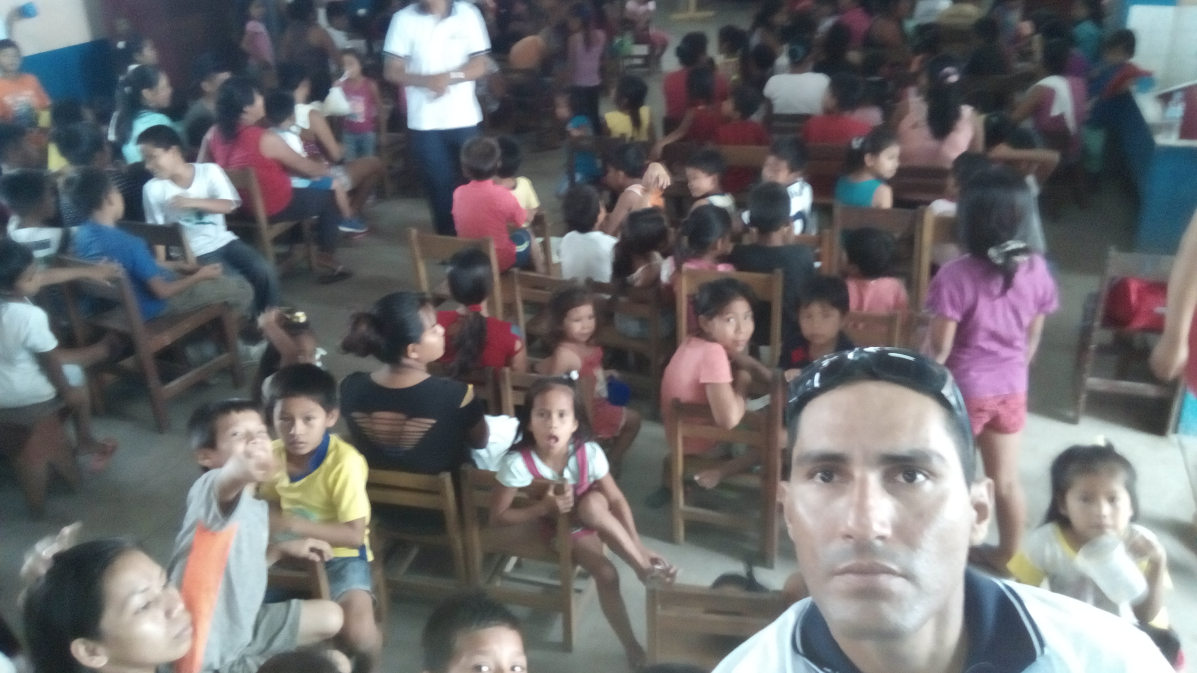 Organizando a los niños para que esperen el inicio de la chocolatada.