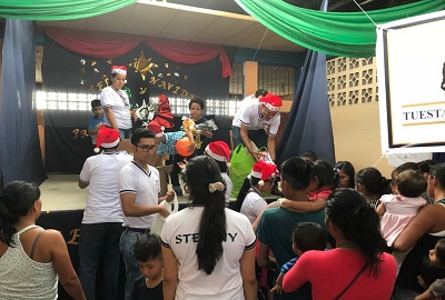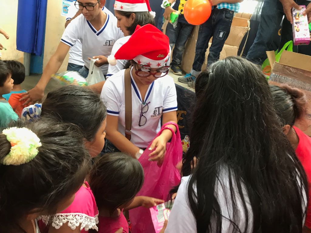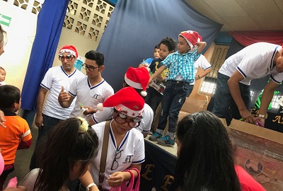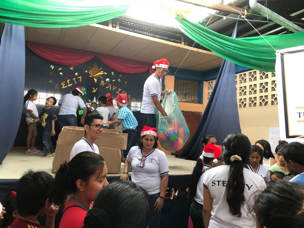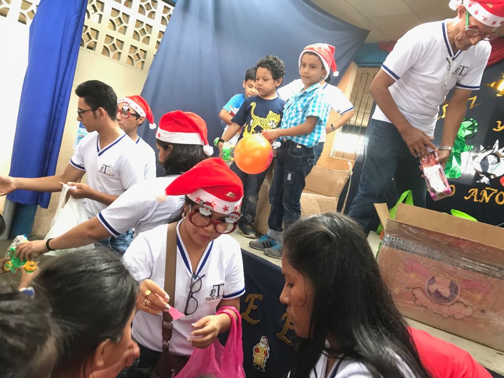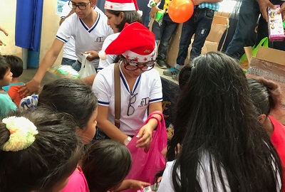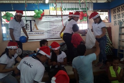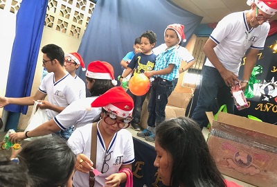 Entregando los regalos a niñas y niños.
