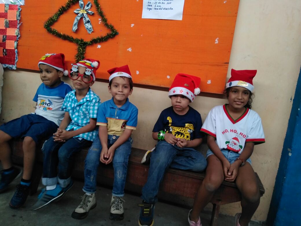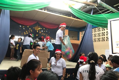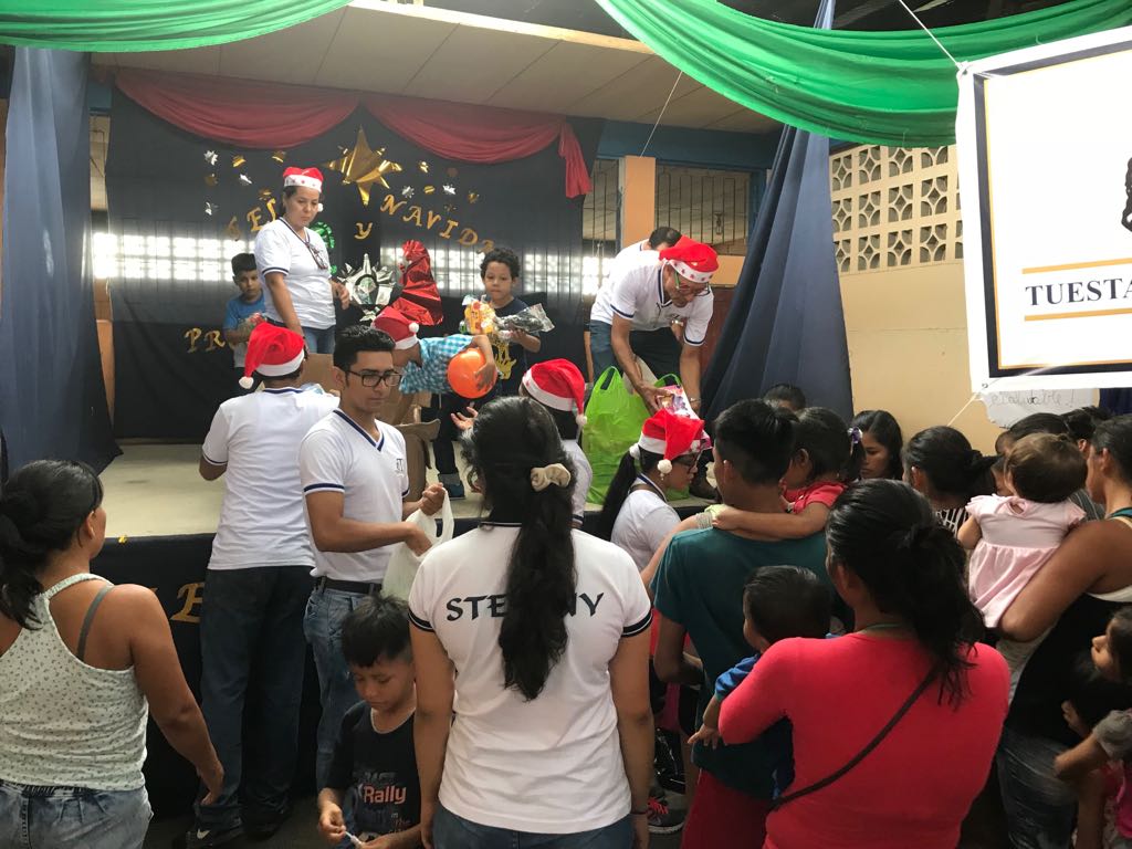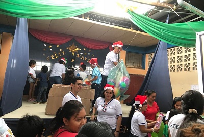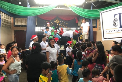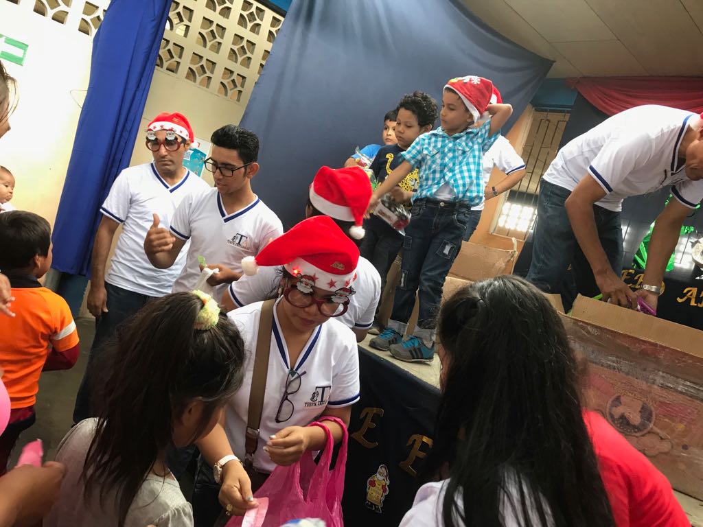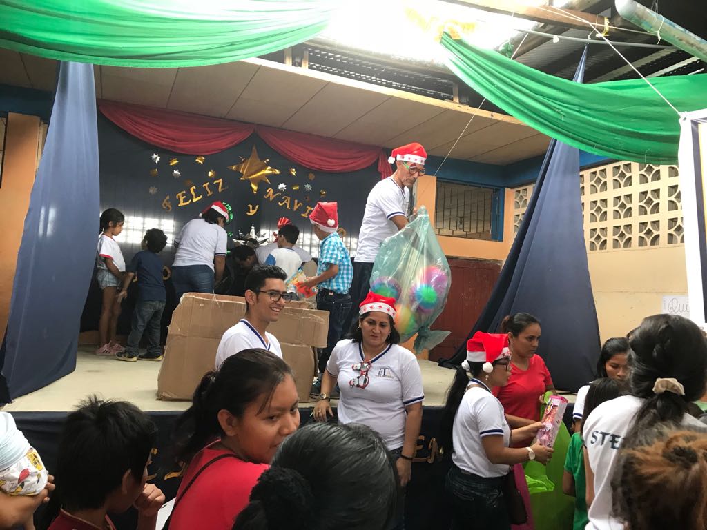 Entregando los regalos a niñas y niños.