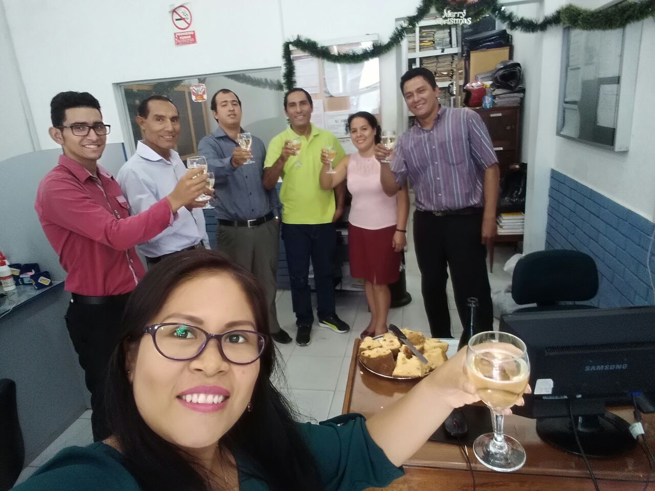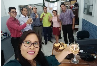La Familia Tuesta Abogados SAC, degustando del sabroso chocolate y panetón.