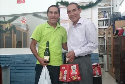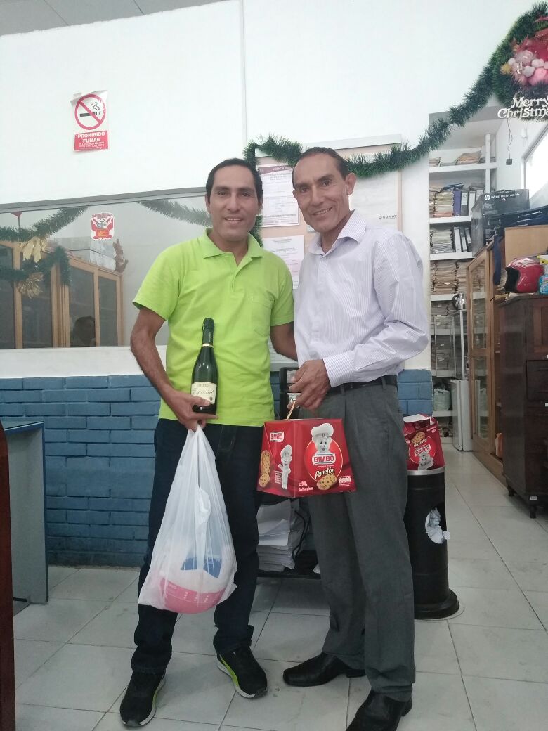 Entregando Pavo, Panetón y el Champagne a sus colaboradores.